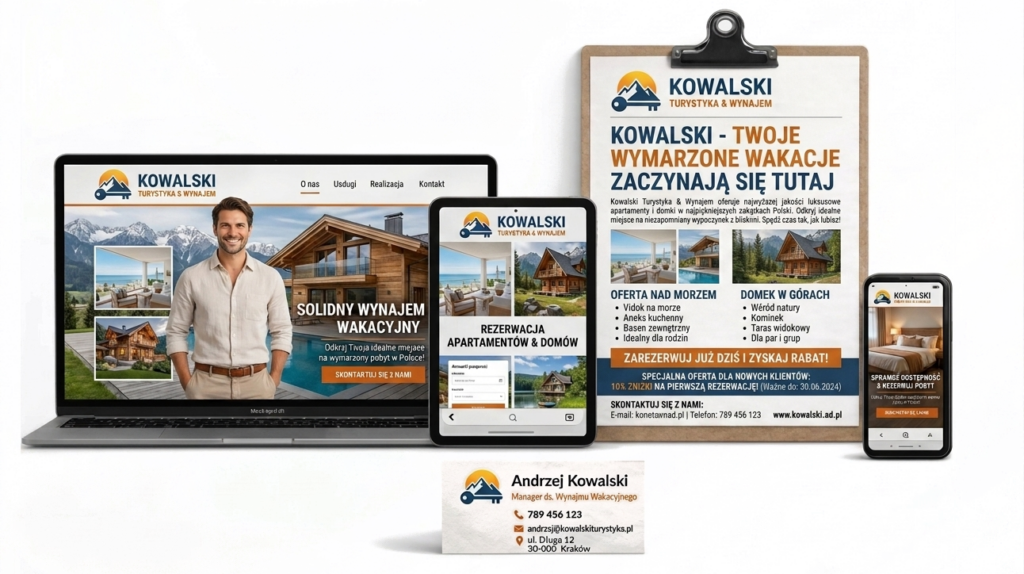 Dobrze zaprojektowana strona internetowa nie zastępuje portali rezerwacyjnych. Zamiast tego zbiera wszystko w jednym miejscu i prowadzi gościa prosto do kontaktu lub rezerwacji.